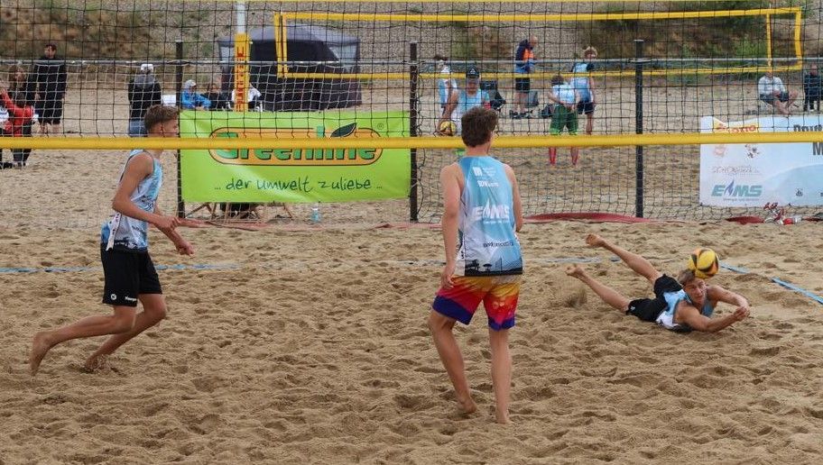 Luk Hansen ist Deutscher Beachvolleyball Meister Düsseldorf. Die Setzliste angeführt aber nicht als Favorit im Finale gestartet: Der Flensburger Luk Hansen hat sich an der Seite vom Lohhofer Dominik Mürle die Goldmedaille bei den Deutschen Meisterschaften im Beachvolleyball der Altersklasse U 17 erspielt. Hohe Favoriten waren die aufgrund geringerer Setzpunkte nur an drei gesetzten Beachvolleyball-Nationalspieler Ben Bockfeld und Hendrik Faber (Herrsching/Dachau) – ohne Satzverlust rasten die beiden förmlich durch das Turnier, während die Flensburg-Lohhofer-Kombination zahlreiche knappe Spiele erst in drei Sätzen gewinnen können. So gab auch Coach Gunnar Hansen die Marschrute für das Finale vor, welches von über 3.000 Zuschauern im Stream begleitet wurde: „Lasst uns nicht auf den Spielstand schauen, sondern versuchen, jeden Ballwechsel besonders gut zu spielen.“ Offensichtlich löste er damit den Knoten - Hansen/Mürle spielten befreit auf, die Aufschläge von Hansen saßen, die Angriffe von Mürle waren stabil. Trotz verlorenem ersten Satz (11:15) waren die beiden im Spiel und konnten in den nachfolgenden beiden Sätzen mit souveränem Side-Out und starken Aufschlägen weitere Punkte sammeln. Folgerichtig gingen Satz zwei und drei überraschend aber verdient (15:8, 15:9) und deutlich an das Nord-Süd-Duo, welches sich im Laufe der letzten Monate und Jahre immer wieder zu einzelnen Trainings- und Wettkampfphasen zusammengefunden hat. „Wir haben uns das ganze Turnier über die Partien gequält und konnten nie so richtig an unsere Bestleistung anschließen – umso schöner ist es, dass es jetzt im Finale so richtig funktioniert hat.“ zeigt sich ein äußerst zufriedener Luk Hansen und wird ergänzt von seinem Partner Dominik Mürle: „Ich hatte etwas Schulterprobleme – aber im Finale war das alles egal – Hauptsache gewonnen – das fühlt sich richtig gut an!“ Nach zwei Gruppenpartien waren noch vier Spiele bis zum Finale zu spielen. Darunter waren vier Spiele, die erst im dritten Satz entschieden wurden – teilweise auch äußerst knapp! Während Luk Hansen vor Wochenfrist in Barby noch mit Kreislaufproblemen in der Turnierendphase zu kämpfen hatte, präsentierte er sich diesmal nerven- und spielstark. Das stimmt optimistisch auf das jetzt anstehende internationale Turnier (23./24.7.) in Bilthoven (Niederlande), welches Hansen an der Seite von Ben Bockfeld spielen wird. „Ich freue mich immer wieder darauf, mit anderen Spielern zu spielen. Das pusht mich und gibt mir wieder neue Impulse.“ und ergänzt leicht schmunzelnd: „Aber mit Dom ist das noch am besten!“ Die erst 15-jährige TSBerin Brianna Densch erspielte sich an der Seite ihrer Partnerin Nehle Henke (Eckernförde) bei ihren ersten Deutschen Meisterschaften einen respektablen 25. Platz in der Damenwertung. Fotografin: Finja Nitschke #nachwuchsstützpunktflensburg #BeckmannDieKüche